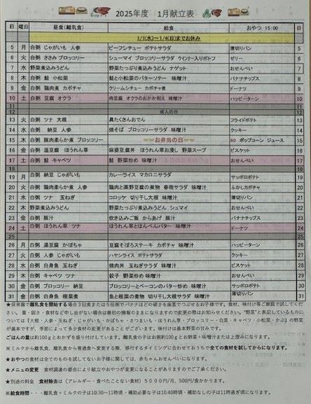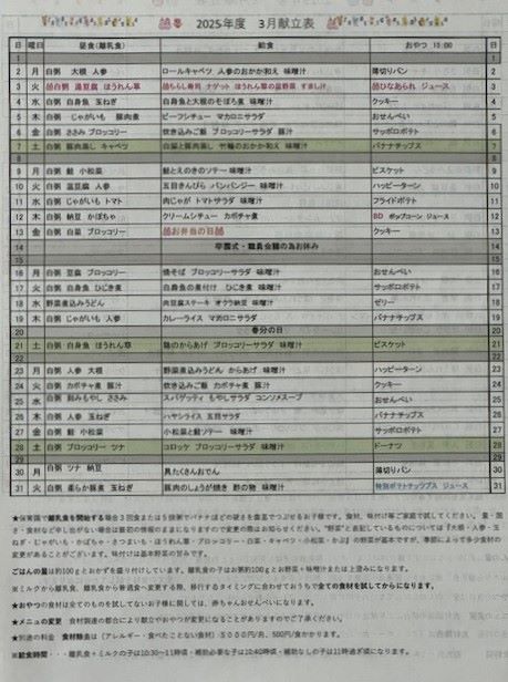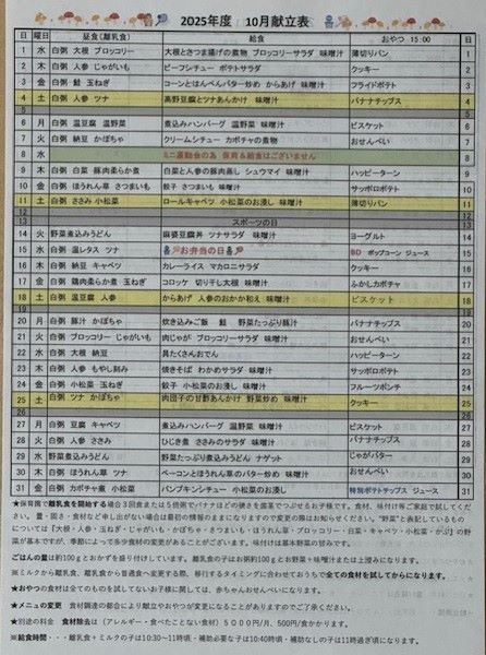献立表2025年度(2025年4月~2026年3月)