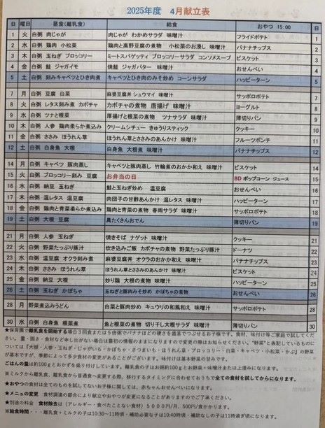 04月 献立表