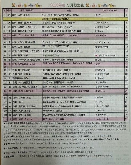 05月 献立表