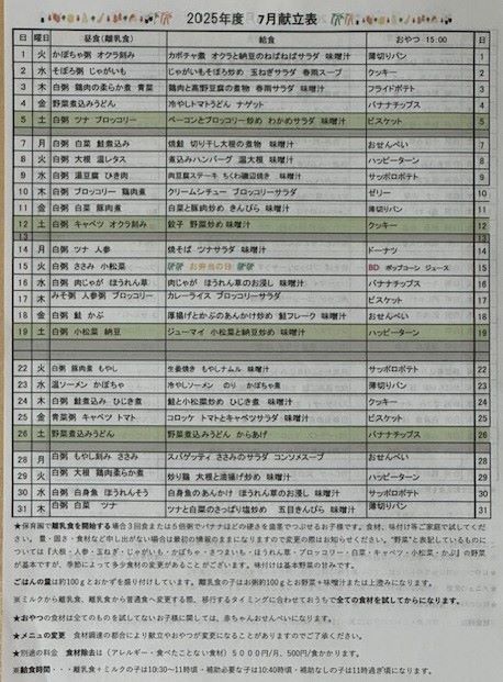 07月 献立表