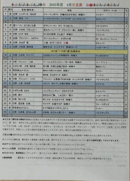 08月 献立表