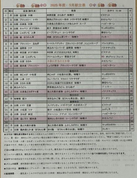 09月 献立表